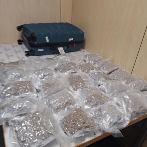 Selon la MRA, l’individu a été interpellé lors d’un contrôle approfondi de ses bagages. Les agents ont alors mis au jour vingt-quatre sachets en plastique transparents contenant du cannabis compressée.