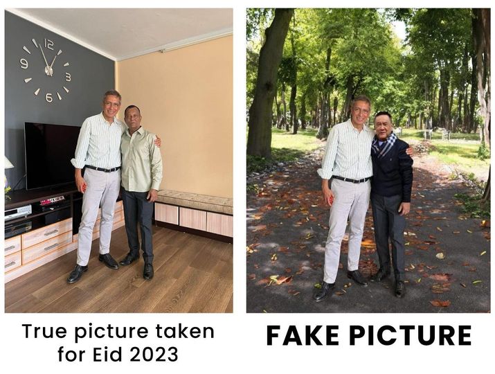 Le leader de l’opposition en a également profité de l’occasion pour poster la photo originale, prise en 2023 où il posait au côté d’un individu, à  l’occasion de la fête Eid-Ul-Fitr.