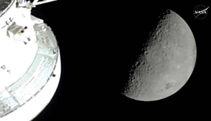 Derrière les équipes réunies face à l’objectif à Houston, les compteurs tournaient à mesure que le vaisseau spatial Orion se rapprochait de la Lune, un succès couronnant de longues années d’efforts.