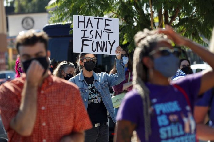 Un groupe de manifestants s’est rassemblé mercredi près du siège de Netflix à Los Angeles à l’appel de militants LGBTQ qui reprochent à la plateforme de streaming son soutien à l’humoriste Dave Chappelle et ses propos jugés transphobes par certains.