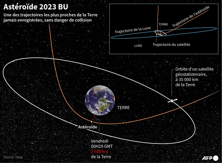 C’est l’astronome amateur Guennadi Borissov, le découvreur de la comète interstellaire Borissov en 2019, qui a tiré la sonnette d’alarme samedi. Des dizaines d’observations ont ensuite été réalisées par des observatoires à travers le monde, confirmant l’arrivée de 2023 BU.