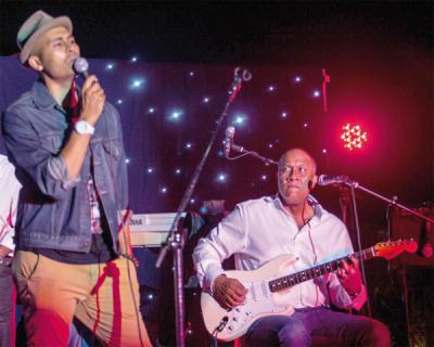 Sont venus des musiciens et chanteurs qui sont restés les proches collaborateurs d’Allan Marimootoo dans le circuit hôtelier. Des artistes suffisamment polyvalents et rompus aux techniques du show pour savoir mettre en place un mini-spectacle en un rien de temps. Et il y avait Dave. Ou plutôt David Marimootoo, puisque nous pouvons ici laisser tomber le nom de scène pour laisser faire le p’tit gars venu tester les possibilités d’Izi, la nouvelle salle de fêtes que lance son père sur les hauteurs de Geoffroy à Bambous.