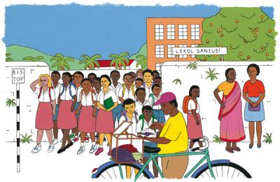 Avek kreol morisien ki finn fer so lantre dan lekol de fason striktire, sa finn transform boukou zafer dan sekter ledikasion. Mauritius Institute of Education (MIE) finn bizin kree enn Younit Kreol Morisien pou form bann profeser ek osi pou kree bann materiel pedagozik. Parmi, ena Ki pase la ? Se enn liv lekol ki Nicholas Natchoo de sa Younit la finn ekrir avek so bann kolaborater. Li rakont lavantir de personaz, Vanessa ek Leo, avek ki bann zanfan kapav idantifie zot. Li osi enn liv vokabiler ek zistwar. Li destine bann zelev a partir Standard II. Sa de personaz la finn rezwenn par Tikoulou dan liv Standard III. A traver Ki pase la ?, bann zanfan pe osi aprann inpe lor patrimwann Moris ek sa pe ankouraz zot fer plis lektir, mem andeor kad edikatif, ek devlop enn kiltir literer.
