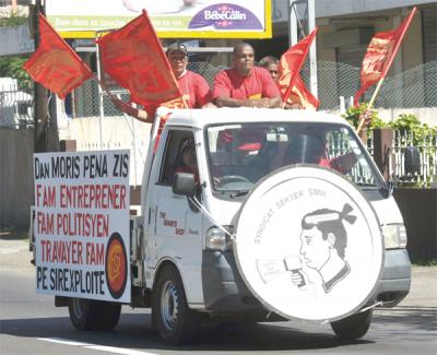 L’atmosphère tendue au sein de la classe syndicale, avec l’animosité grandissante depuis plusieurs mois entre certaines figures de proue, se confirme avec un 1er-Mai 2013 sous forme de désunion. En effet, les célébrations syndicales se dérouleront cette année en ordre dispersé avec les deux principaux blocs, soit le collectif 1er-Mai et le trio General Workers Federation/Joint Negotiating Panel/Rezistans ek Alternativ, rassemblant leurs troupes respectivement à Beau-Bassin et à Réduit, sans oublier les activités en solo d’autres fédérations syndicales.
