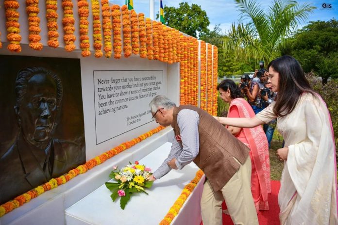 Le gouvernement a entamé hier matin la commémoration du 94e anniversaire de feu sir Anerood Jugnauth à travers une cérémonie de dépôt de gerbes au samadhi de l’ancien Premier ministre et fondateur du MSM au SSR Botanical Garden. Ces hommages ont lieu sous le patronage du ministère des Arts et du Patrimoine culturel, qui a prévu une série d’activités.