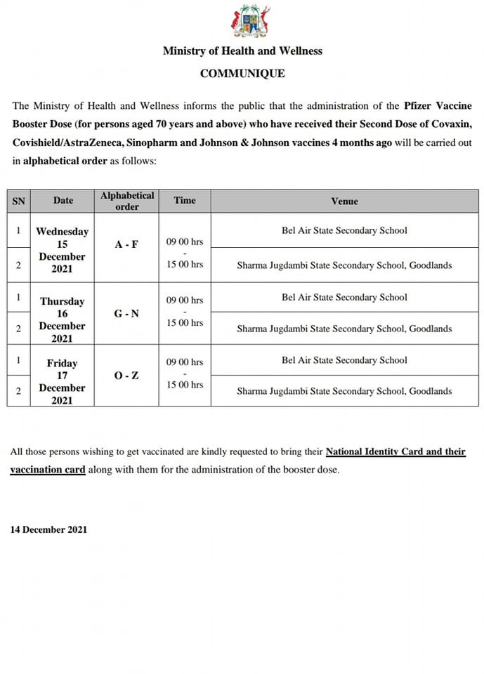 À savoir que la vaccination se fait en ordre alphabétique à Bel Air State Secondary School et Sharma Jugdambi State Secondary School à Goodlands.