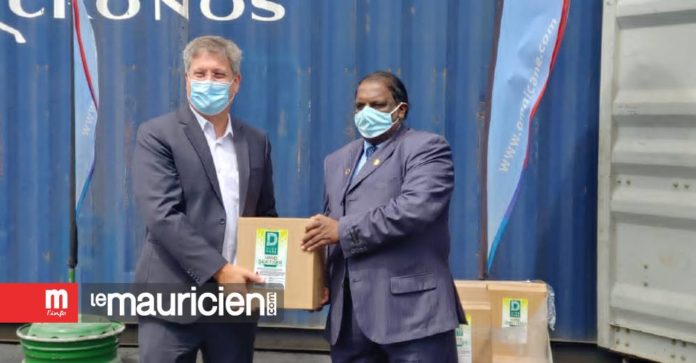 La société Omincane a fait don de 1000 litres de Dina Care Hand Sanitizers au gouvernement pour les habitants de Rodrigues ce mardi 22 février.