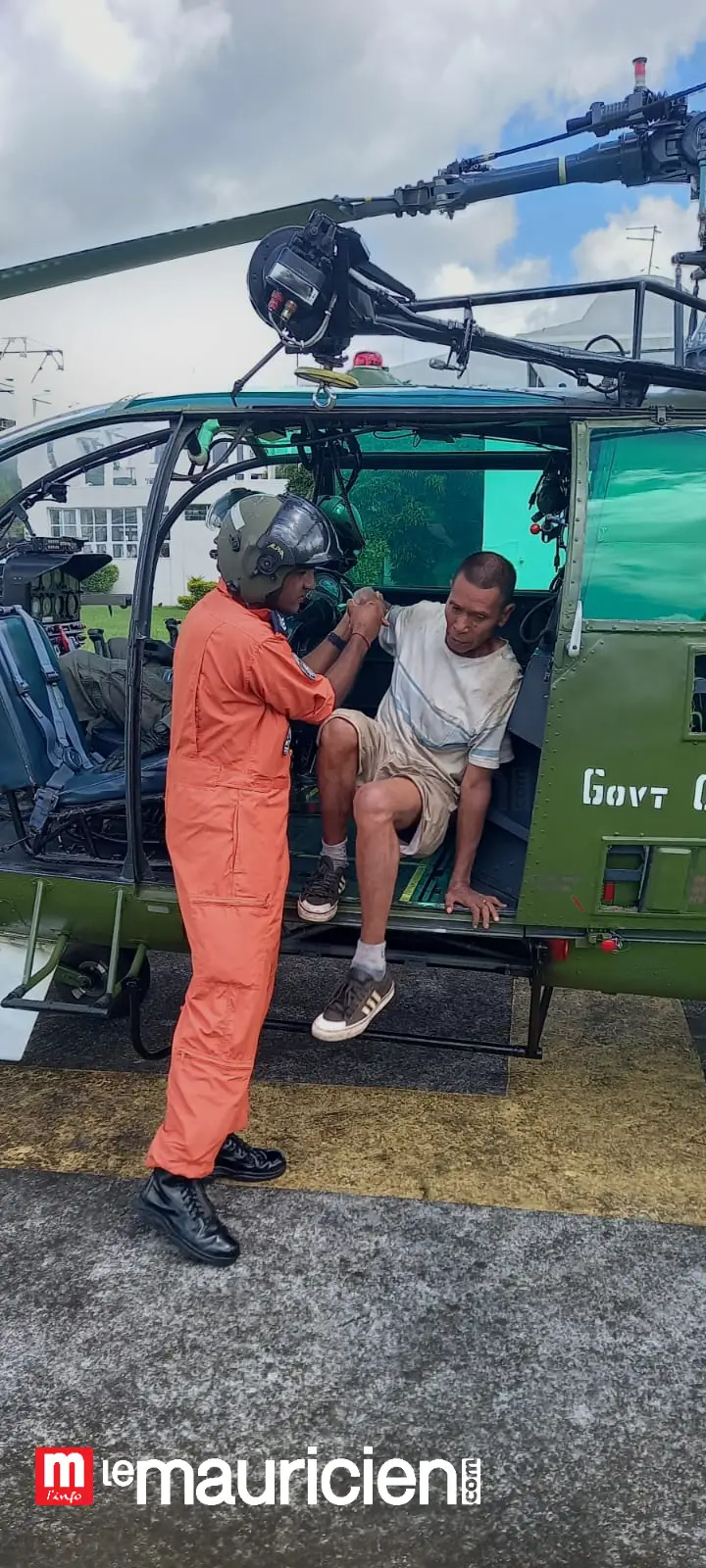 Alertées, les équipes mobilisées au sol se sont immédiatement rendues sur place. Une opération d’évacuation a alors été mise en œuvre. Hervé Valère a été hélitreuillé, avant d’être transporté vers l’hôpital Jawaharlal Nehru (JNH), à Rose-Belle, où il a été pris en charge.