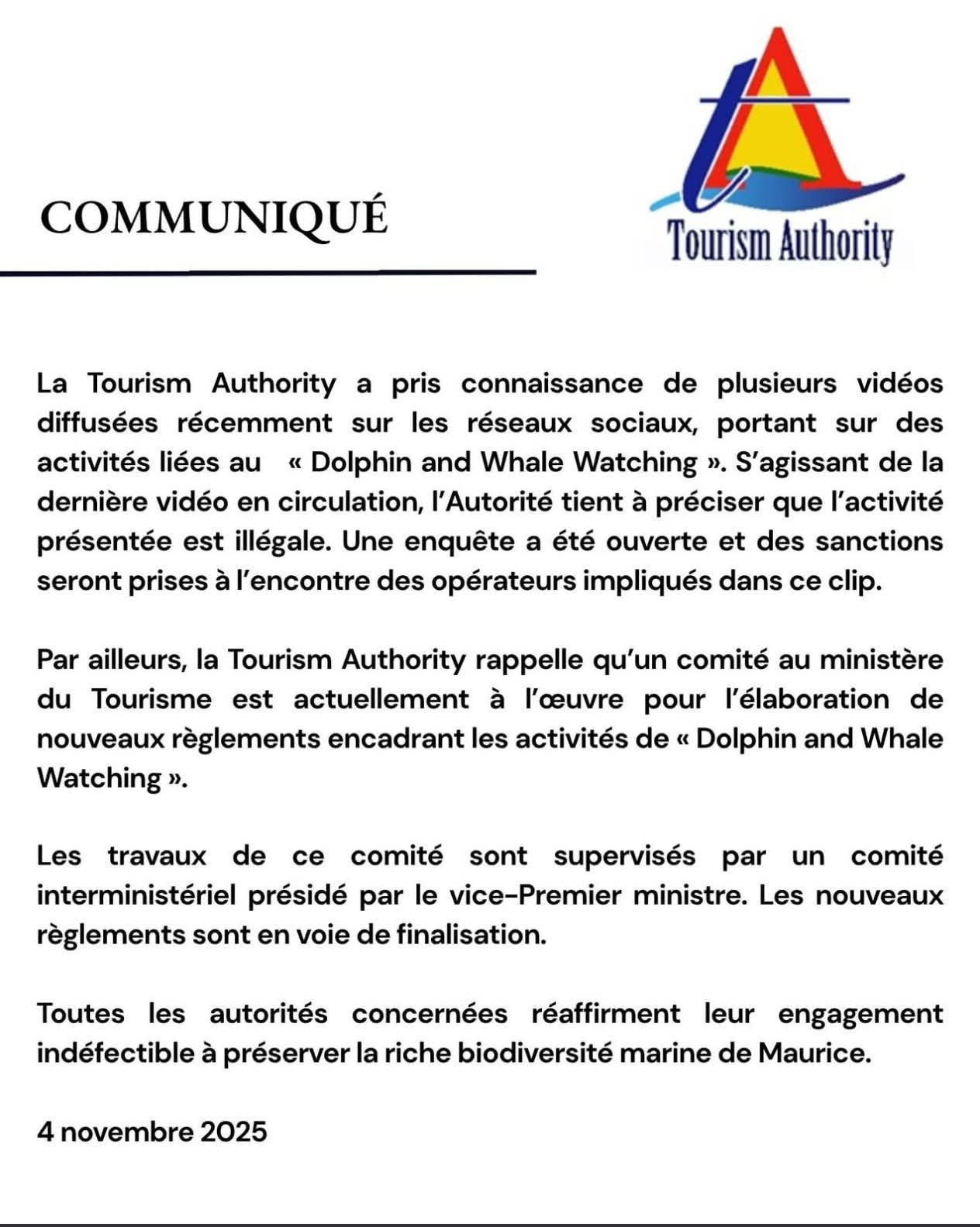 S’agissant de la dernière vidéo en circulation, la Tourisme Authority « tient à préciser que l’activité présentée est illégale ». C’est ce qui ressort d’un communiqué émis ce mardi.