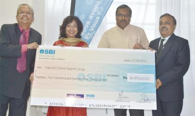 La SBI (Mauritius) Ltd, avec la collaboration de la New India Assurance, a remis un chèque de Rs 475 000 au Diabetes Parent Support Group ce matin à son siège à Ébène. Ce don vise à soutenir ceux souffrant de diabète de type 1 et 2. Une clinique mobile était aussi présente afin d’encourager le personnel de l’institution bancaire à faire un check-up régulier. « We need to be committed to the community where we work and to bring awareness concerning this disease », a déclaré le haut-commissaire indien à Maurice T.P. Seetharam.