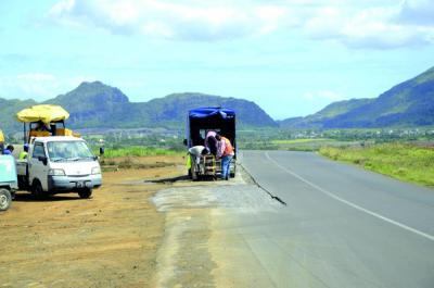 Outre les poids lourds circulant sur ce tronçon, force est de constater que matériaux de mauvaise qualité ou travaux de bitumage bâclés provoquent constamment sa détérioration. Tant et si bien que rouler sur cette route non éclairée est un véritable danger, principalement pour les motocyclistes contraints de circuler dans des ornières. De même, plusieurs automobilistes ont eu la mauvaise surprise, en empruntant le contour menant vers le pont Hollyrood, d’avoir un pneu crevé dans l’une de ces ornières. Soulignant l’état déplorable de cette route, les usagers font aussi ressortir que les travaux annoncés pour l’agrandissement du pont Hollyrood, qui devraient coûter, selon le ministre Baichoo, Rs 24M, se font toujours attendre. Entre-temps, les automobilistes empruntant cet axe qui ne dispose toujours pas d’éclairage, la nuit, se doivent d’être d’une extrême vigilance, principalement à hauteur du pont Hollyrood, dans le contour, au risque de se retrouver dans le ravin.