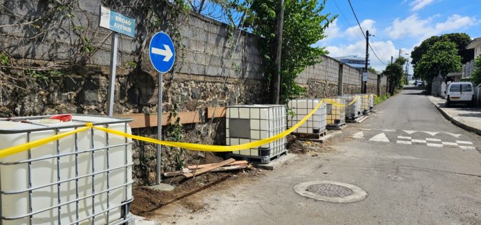 Pour prévenir à un éventuel effondrement du mur, des Water Tankers ont été placés à l’avenue Broad pour sévir en tant que contre-poids, indique le maire de Quatre-Bornes, Dooshiant Ramluckhun.