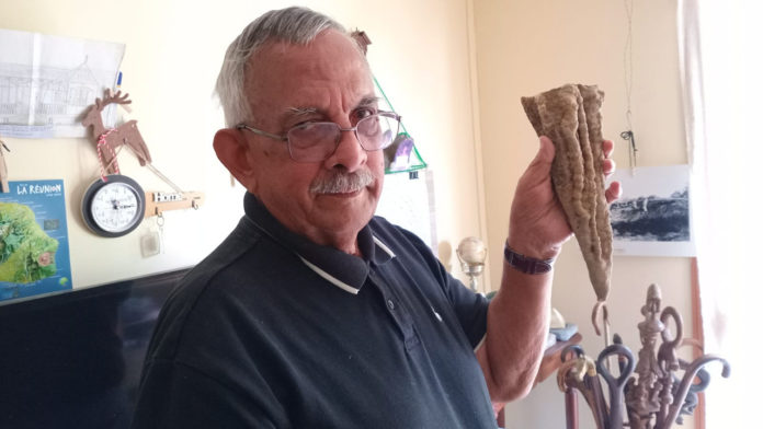 À son arrivée dans sa chambre à Saint-Jean de Dieu, il a eu la surprise de retrouver son petit univers, ses trésors familiers. Son fils s’en était chargé avec soin. Il a retrouvé sa collection de cannes en bois, achetées à Maurice, en provenance de la Tanzanie et de l’Inde, de toutes les formes. Ses pierres et minéraux ramenés d’Australie, de Namibie, de Madagascar et qui proviennent d’ailleurs. Il y a même cette pierre basaltique qu’il avait trouvée dans les terres d’un champ de cannes. Ce qu’elle a de spécial ? « Regardez bien au fond, dans cette alvéole », nous dit-il. Et là, en nous approchant de plus près, nous comprenons pourquoi il tient à ce morceau de roche… mais nous en garderons le secret. Posé à côté, un quartz. Si Jocelyn Chaillet n’a pu être le géologue qu’il souhaitait depuis l’enfance, son métier d’agronome l’a rapproché de la terre et des pierres. « Au collège, je voulais prendre la géologie en advance level aux examens de la GCE. Mais le ministère de l’Éducation m’avait fait comprendre que ce ne serait pas possible de mobiliser un examinateur rien que pour ma demande », se désole-t-il.