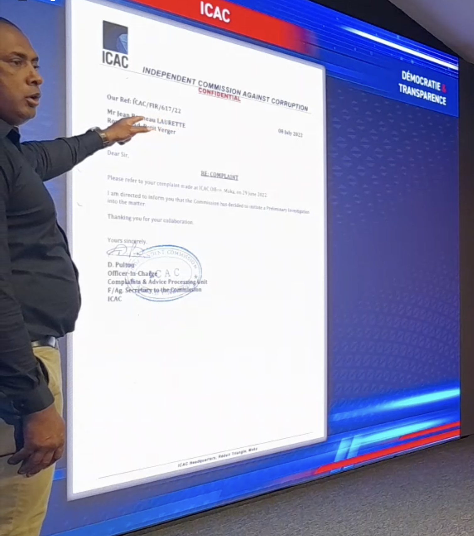 Lors d’un point de presse ce jeudi 24 août, Bruneau Laurette explique qu’il avait porté plainte le 8 juillet 2022 à l’Icac, faisant part d’allégations de fraudes contre le Premier ministre, Pravind Jugnauth et ses colistiers, Yogida Sawmynaden et Leela-Devi Dookun Luchomun. Pourtant, un an après sa plainte, aucune action n’a été prise, dit-il, et aucun des protagonistes qu’il a cités, dont le Premier ministre, n’aurait été inquiété.
