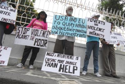 « Gouvernman bizin aret kre povrete », clamaient-ils. Pour le travailleur social Eddy Sadien, les pays étrangers devraient cesser d’accorder des aides financières à Maurice. « Moris ena boukou kas me gouvernman pa pran sa kas-la kont pou eradik lapovrete ek lextrem povrete. Kan minis pe al a letranze gran koze li dir li bizin kas pou ki eradik povrete me kan kas vini pena nanyie ki li pe fer. »