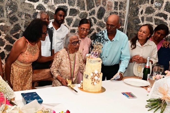 Le ministère de l’Intégration sociale, de la Sécurité sociale et de la Solidarité nationale a remis à la centenaire un bouquet de fleurs, une médaille de centenaire, un certificat et un chèque de Rs 26 203. Elle a également reçu une couette, un oreiller, un protège-matelas et un fer à vapeur en céramique.