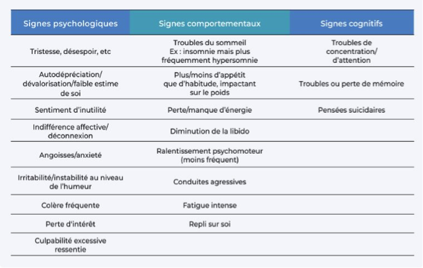 Quand quelqu’un montre des signes éventuels de dépression ou émet des signes verbaux directs ou indirects tels que précédemment mentionnés, il importera d’oser lui demander si il.elle souffre au point de vouloir se faire du mal, de vouloir se donner la mort. Et de l’inviter à parler de ses pensées éventuellement suicidaires. On peut lui dire « Parfois quand on se sent triste, désespéré.e, on peut avoir des pensées de se donner la mort. T’arrive-t-il d’avoir ce type de pensées ? Si oui, à quelle fréquence ? » si les pensées sont fréquentes et envahissantes et un début d’élaboration d’un plan suicidaire se pose, il importe d’entendre cela, de le prendre au sérieux et d’agir pour prendre soin de la personne. Ces signes, outre les préparatifs en vue de leur mort comme mettre de l’ordre dans ses affaires ou écrire des lettres d’adieu, donner des objets personnels, etc. ou encore montrant un intérêt soudain particulier pour les manières de se donner la mort (produits toxiques, s’exercer à faire des nœuds, etc.) sont importants.