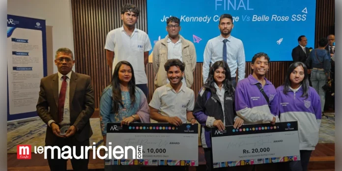 La finale s’est tenue le 25 septembre à l’Integrated Customs Clearance Centre de Plaine-Magnien, réunissant les deux équipes finalistes dans un duel d’idées intense. Le collège d’État de Belle-Rose, représenté par Yoshita Yojna Serwan et Nianjinee Vernousha Shunmoogum, affrontait le collège John Kennedy, défendu par Pariksit Mudhoo et Thaiyal Appavoo.