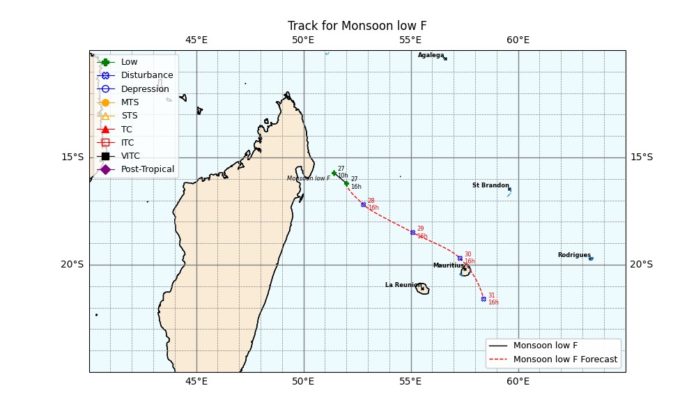 Selon les modèles de prévision numérique, tous concordent pour indiquer que ce système s’approchera de Maurice par le nord-ouest, tout en s’intensifiant pour devenir une dépression de mousson.
