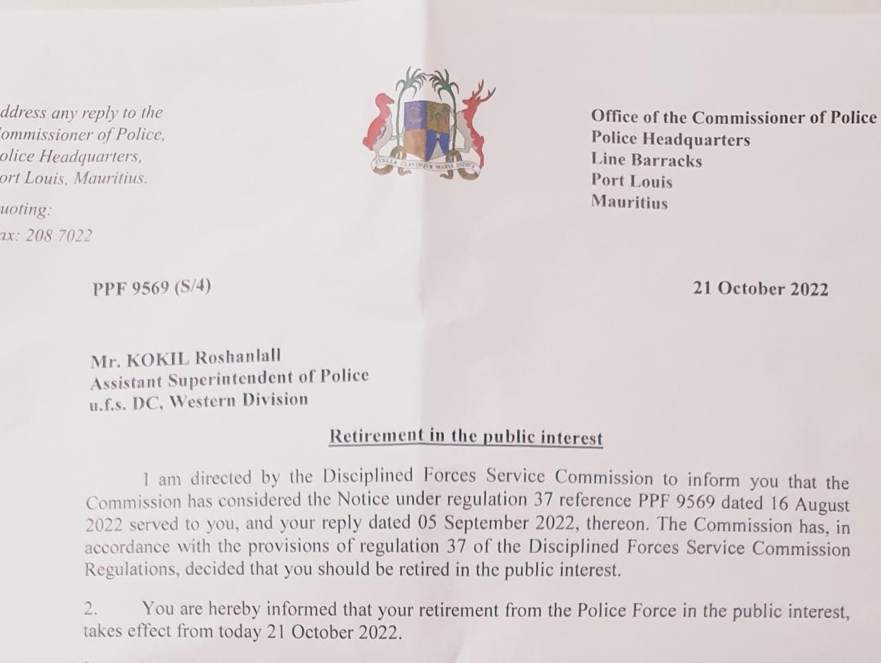 L’ASP Roshan Kokil a été poussé vers la retraite anticipée, et ce, dans l’intérêt public. Rappelons que ce haut gradé fait l’objet d’une enquête concernant une clé USB contenant des vidéos d’actes de torture perpétrés par des officiers de la Central Investigation Division de Terre-Rouge.