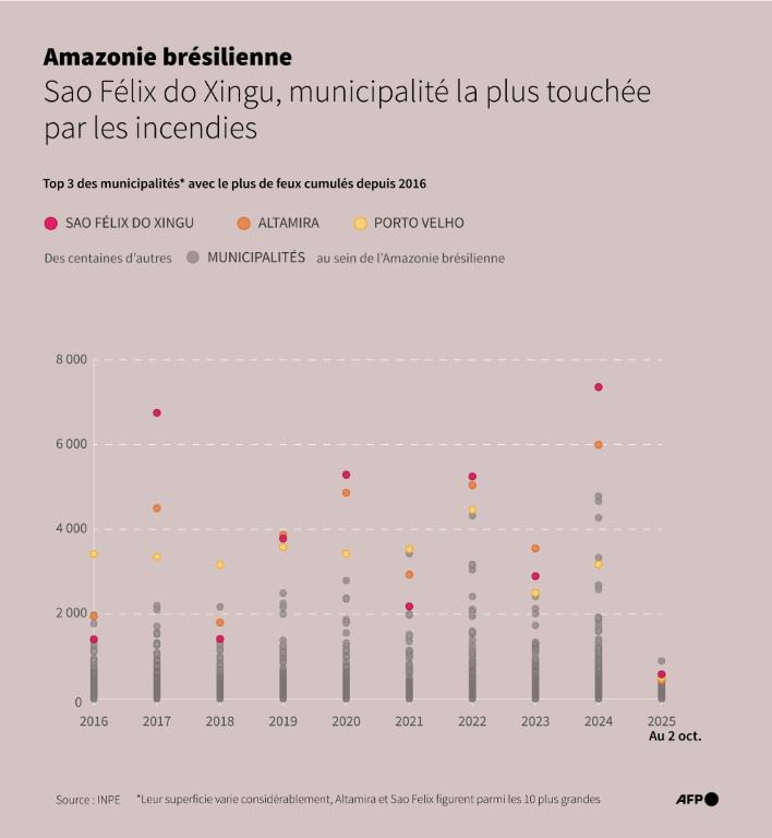 La propriété, condamnée à six amendes jamais payées pour infractions environnementales depuis 2013, a concentré plus de 300 des incendies enregistrés à Sao Félix en 2024, selon des données analysées par l'AFP.