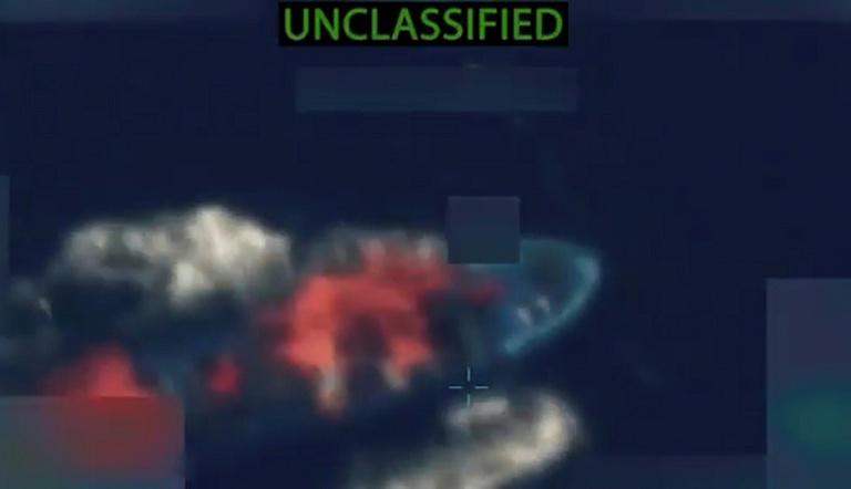 Sur les images qui accompagnent le message du ministre, on peut voir deux bateaux côte à côte, en position stationnaire, pris pour cible, puis deux autres touchés en pleine navigation et en feu.