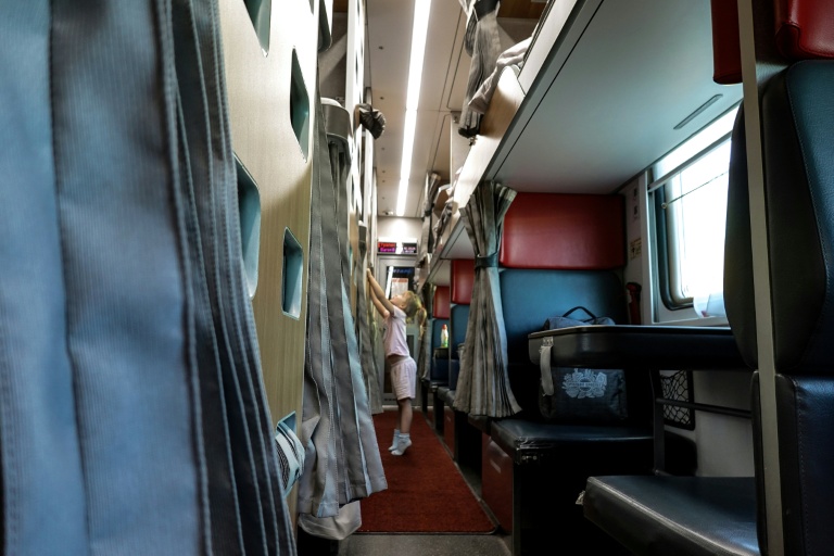 "Il arrive qu'il y ait encore moins de passagers. C'est devenu compliqué de voyager depuis 2022", dit Olga, chargée du confort dans l'une de ces voitures aux couchettes riquiqui et au chauffage poussé à fond.