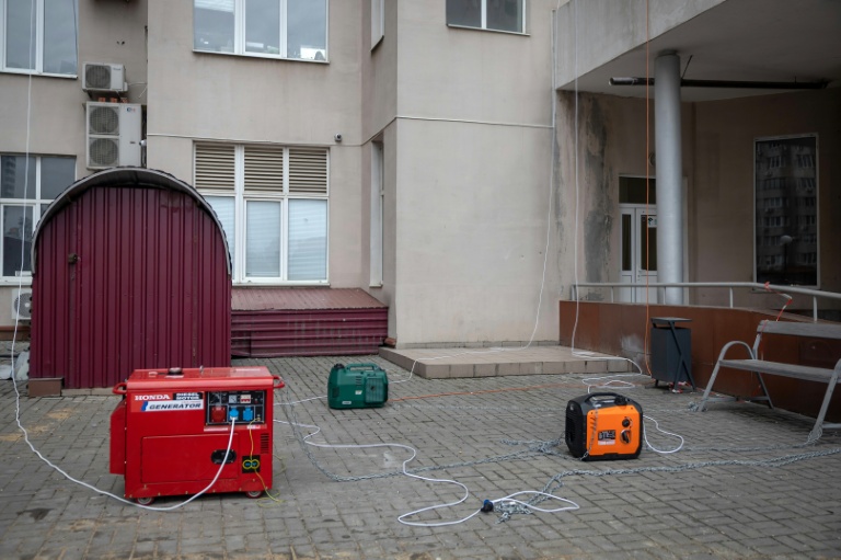 Le bruit entêtant et épuisant des générateurs s'élève dans la cour au milieu des trois immenses immeubles gris qui constituent le complexe résidentiel de plus de 1.000 appartements. Le vent s'y engouffre, glacial et humide.