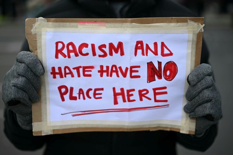 Parmi les nombreuses pancartes: "Non au racisme" ou "vous ne pouvez pas nous diviser".