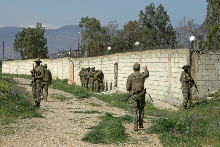 A la frontière avec le Liban, l'armée syrienne a renforcé son déploiement, en pleine guerre au Moyen-Orient: des blindés sont positionnés derrière des barricades de sable et ses soldats ratissent des tunnels qu'ils disent avoir été utilisés par le Hezbollah.