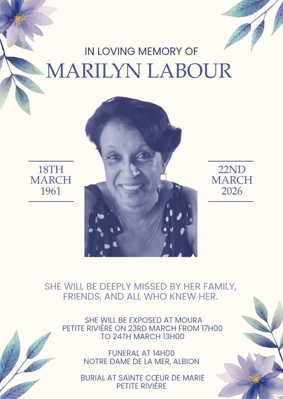 ACCUEILEn une Marilyn Labour s’est éteinte le 22 mars 2026 23 Mar 2026 21h52 FacebookTwitterCopy URL Partager FacebookTwitterCopy URL EN CONTINU ↻ Entre dépendance et autonomie : Arvin Boolell plaide pour un retour aux bases, planter et consommer local23 Mar 2026 16h02 Approvisionnement en huile lourde : un retard force le CEB à revoir sa stratégie énergétique23 Mar 2026 16h00 Montagne des Signaux : un jeune blessé secouru, il signale la disparition de sa mère23 Mar 2026 15h51 La conférence de presse de vendredi soir23 Mar 2026 15h45 En toute liberté : Le retour inattendu de la manivelle !23 Mar 2026 15h36 Kishore Pertab démissionne de ses fonctions de Senior Adviser et du board de l’Economic Development Board23 Mar 2026 15h17 A fleur de rupture23 Mar 2026 15h07 Viré mam !23 Mar 2026 15h06 Ce MMM-là…23 Mar 2026 15h00 Disparition à Plaine-Champagne : Hervé Valère retrouvé affaibli dans un ravin23 Mar 2026 14h12 TOUS LES TEXTES Lire le journal