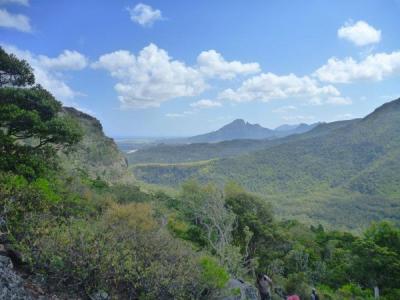 Vers midi, le groupe se retrouve sur la Pointe. Une clairière au sommet où nous nous posons pour le déjeuner. Nous nous accommodons du peu d’espace en ce lieu, qui livre une vue magnifique ; toute la région ouest où l’on devine les Salines de Tamarin, la baie de Rivière Noire et sa marina ; au loin le nord et les autres montagnes visibles. Certains s’abreuvent de ce moment et s’accordent quelques secondes de réflexion alors que d’autres épuisés par la montée préfèrent rester assis. Cheveux au vent et visages radieux… on peut lire cette joie intérieure qu’éprouvent ceux qui ont la chance d’être en ce lieu en cet instant. Et qui ne se rend pas compte ici que face à l’immensité de la nature, l’homme demeure infiniment petit ?