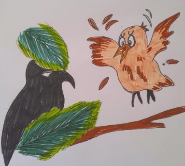 Cette voix rauque et étrange perturbe la bonne humeur des petits moineaux.