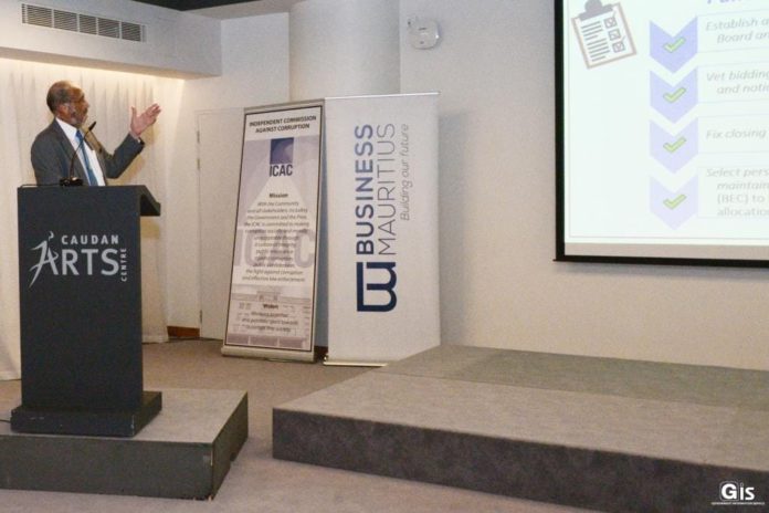 Organisée par le Central Procurement Board (CPB) en collaboration avec Business Mauritius et l’Independent Commission Against Corruption (ICAC), cette séance de travail a réuni des hauts cadres engagés dans le processus d’appel à candidatures pour divers projets d’infrastructures ainsi que des professionnels des secteurs engagés dans le secteur de la construction et des Petites et moyennes entreprises (PME). Elle comprenait aussi plusieurs présentations, à savoir le cadre législatif récent pour assurer une plus grande transparence et davantage de responsabilité et la réduction des risques de corruption dans les procédures d’appels d’offres.
