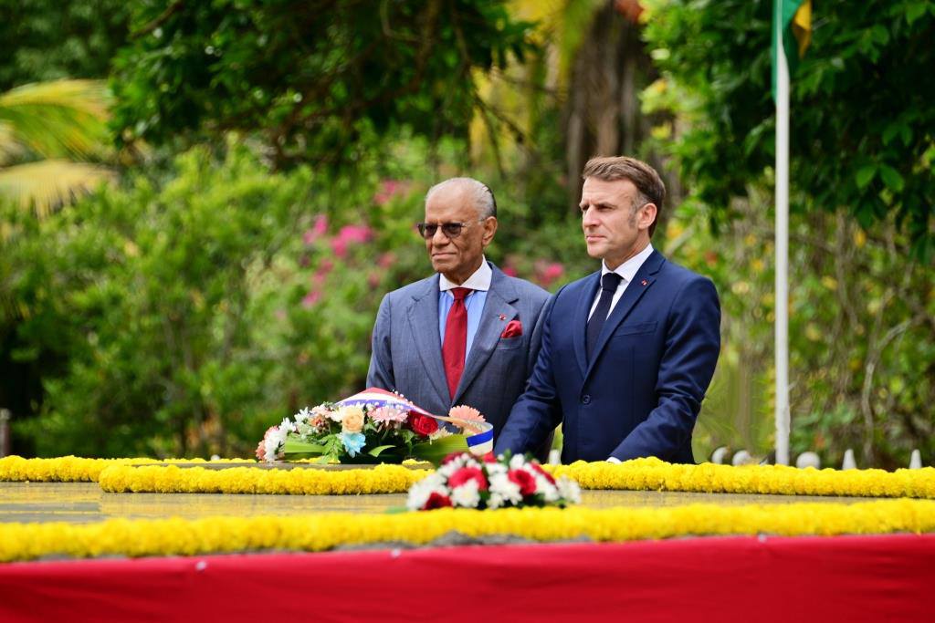 Le président de la République française, Emmanuel Macron, a entamé hier sa journée au Jardin Botanique de Pamplemousses. Il s’est receuilli et déposé une gerbe sur le Samadhi de SSR, en présence du Premier ministre, Navin Ramgoolam, du Deputy Prime Minister Paul Bérenger, et de plusieurs ministres. Il s’est ensuite rendu au Samadhi de feu SAJ, où une deuxième cérémonie de dépôt de gerbes a eu lieu, avant de procéder à la plantation d’un Poupartia borbonica.