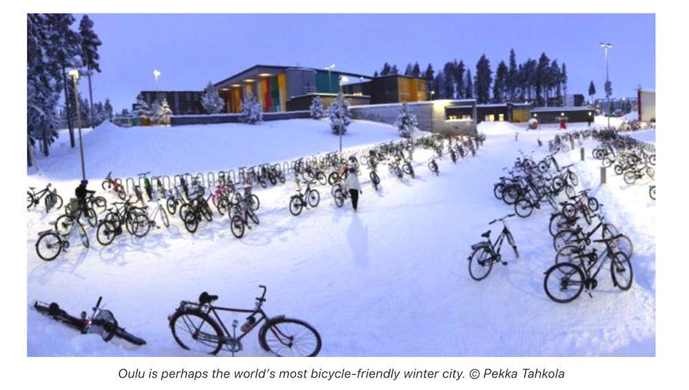 1,000 out of 1,200 PUPILS in this Finnish school arrive, in winter, by bicycle. Others by ski!