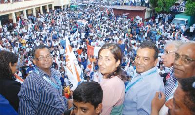 En dépit d’importants moyens logistiques et humains déployés par le PTr/MMM durant la campagne, les résultats d’hier sont venus démentir la force de cette alliance sur le terrain. Au deuxième pointage vers 14 h 45 confirmant qu’au moins deux candidats de l’Alliance Lepep, à savoir Ivan Collendavelloo et Fazila Daureeawoo, entreraient au Parlement, les partisans munis de tout un arsenal bruyant affluaient et c’est une marée orange-blanc-bleu très excitée qui a envahi la cour de l’école lorsque les portes se sont ouvertes vers 17 h 45. L’ancien député mauve Kee Chong Li Kwong Wing, est venu lui aussi féliciter « son ami Ivan ». Celui-ci, visiblement ému à côté de son fils Irvin, a demandé à ses agents de faire entendre à la foule le « Soldat lalit Militant » — l’hyme des militants qui avait été joué à chaque fois qu’il prenait la parole dans les meetings de l’Alliance Lepep.