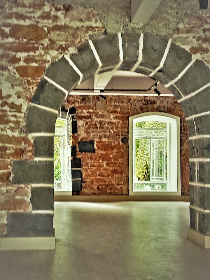 HC : Le Musée va s’installer dans l’aile Sud et c’est l’architecte Raj Ramjit qui sera chargé de concevoir les aménagements. Il va abattre les cloisons de bureaux pour créer de grandes salles d’exposition, décaper les enduits des murs pour laisser apparaître les appareillages de pierres des arches et des montants des ouvertures, ainsi que les moellons en corail aux couleurs ocre et brune. Et il va doter les espaces d’exposition d’un éclairage et d’un système de sécurité incendie adéquat. On peut dire que dans ces beaux murs de 300 ans, Raj Ramjit fait un musée du 21ème siècle.