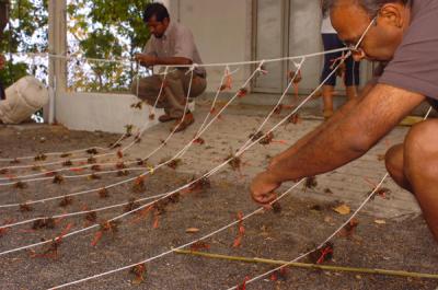 Parmi les techniques démontrées durant la formation figurent le off-button method (la méthode traditionnelle) ciblant des algues de la région du Nord attachées à distance égale sur plusieurs cordes en nylon et planter dans le lagon, le floating system et le bamboo raft.