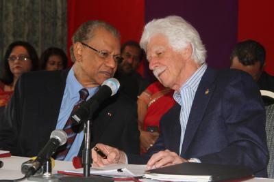 À la lumière de la réponse du Premier ministre à une question du Mauricien lors de la conférence de presse donnée par les leaders de l’Alliance PTr/MMM, rebaptisée l’Alliance de l’Unité et de la Modernité, il faudra vraisemblablement attendre la première semaine de novembre pour voir la publication du writ of election qui doit indiquer la date du nomination day et la date des élections générales. « Sushma Swaraj est une grande invitée et la ministre indienne des Affaires étrangères. Ce sera le premier officiel du gouvernement Modi à effectuer une visite à Maurice. Certainement, il me faudra prendre cela en considération. Il ne sera pas possible d’entrer officiellement en campagne électorale alors qu’un invité de marque est en visite chez nous », a expliqué Navin Ramgoolam. Pour sa part, le leader du MMM Paul Bérenger a enchaîné sur cette déclaration pour affirmer qu’il serait mal élevé d’agir d’une façon susceptible de mêler Sushma Swaraj à la campagne électorale. « Le protocole et l’amitié exigent que nous prenions cela en considération », a-t-il dit.