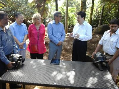 Le ministre du Tourisme Xavier-Luc Duval a procédé hier à une remise de deux tortues au gouverneur de Qingdao, Li Qun. Ce dernier est actuellement à la tête d’une délégation de 25 hommes d’affaires à Maurice. Ces tortues seront transférées à un zoo de cette ville chinoise située dans la province de Shandong. Elles symbolisent les relations entre Maurice et la Chine.