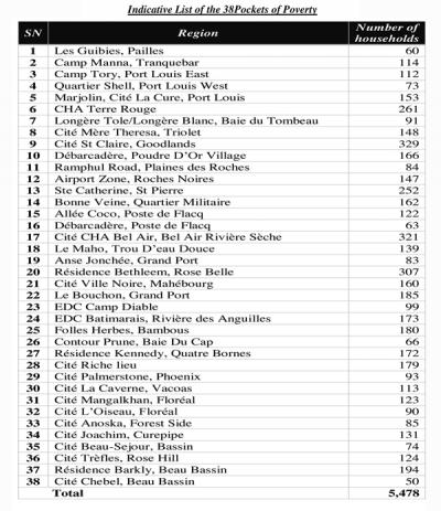 Le “package” proposé par le budget de Vishnu Lutchmeenaraidoo se veut « un soutien complet, destiné à sortir ces familles de leur condition difficile de manière concrète, via l’amélioration de leur style et hygiène de vie ». Une liste composée de 38 poches de pauvreté identifiées a été soumise avec le discours budgétaire en ce sens. Le ministre des Finances invite le secteur privé à adhérer à ce concept de “parrainage”, moyennant la prise en charge d’une poche de pauvreté par compagnie. « Chaque compagnie sera responsable dans le cours, moyen et long termes de l’épanouissement et de développement de cette poche de pauvreté adoptée, et ce afin d’assurer un suivi durable. »