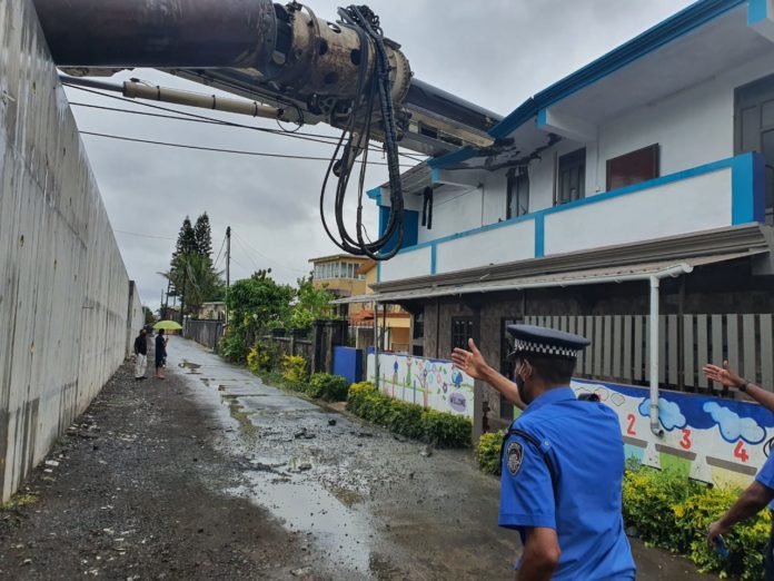 Le toit d’un immeuble, abritant la crèche Wonder Kids au rez-de-chaussée, endommagé avec un couple en état de choc Véritable panique à Floréal, hier après-midi, le long du chantier de construction du méga-projet de Metro-Express entre Quatre-Bornes et Curepipe. Une imposante grue pour pilotis des contracteurs indiens de Larsen &...