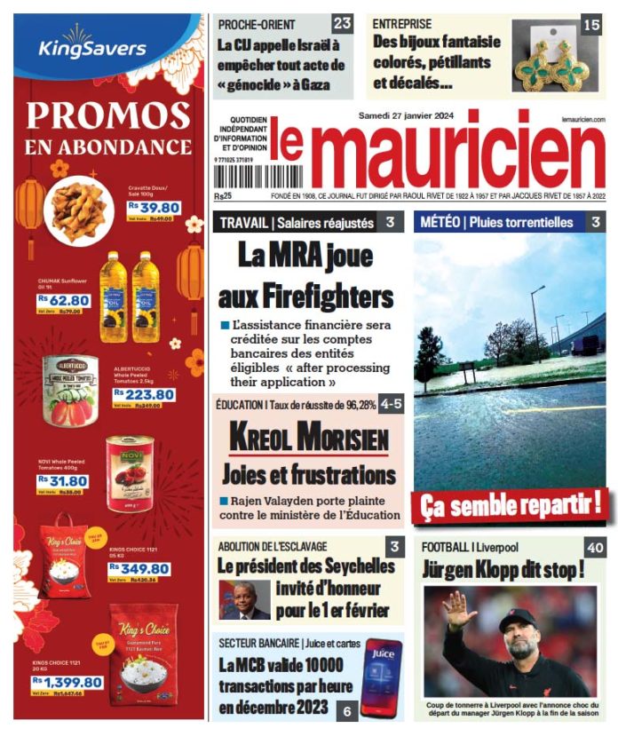 Le mauricien du 27 janvier 2024