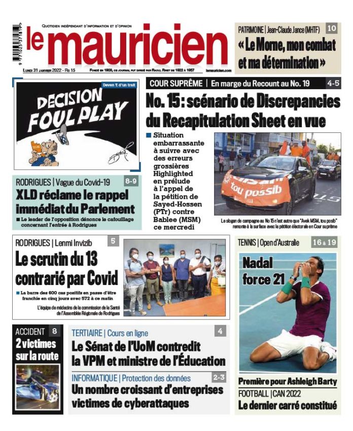 Le Mauricien du 31 janvier 2022