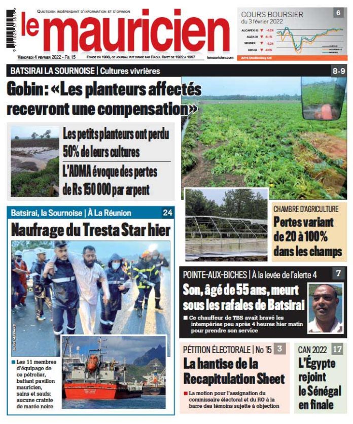 4 Fév 2022 08h27 Le mauricien du 4 février 2022 Abonnement Le journal en continue Nouvel An – Franco Quirin: « Privilégier le dialogue au clivage, l’unité à la division » 1 Jan 2026 16h00 Loto Plus : deux grands gagnants se partagent plus de Rs 27 millions le 31 décembre 1 Jan 2026 14h34 Au Domaine de Gros Cailloux : Jérémy Sourdril et son équipe d’EMCI TV : une notoriété au-delà des frontières 1 Jan 2026 14h00 Sécurité routière : 372 contraventions relevées lors des dernières 24 heures 1 Jan 2026 13h56 Batimarais : une femme de 33 ans retrouvée morte à son domicile, son époux arrêté 1 Jan 2026 13h32 Mamdani, figure de l’opposition à Trump, est devenu maire de New York 1 Jan 2026 13h02 Tapas faciles : Le goût du partage sans se compliquer la vie 1 Jan 2026 11h00 Ventes de Smartphones : Apple et Samsung dominent le marché en 2025 1 Jan 2026 10h00 Loading... ACTUALITÉS Nouvel An – Franco Quirin: « Privilégier le dialogue au clivage, l’unité à la division » "Je présente mes vœux les plus sincères à toutes les Mauriciennes et à tous les Mauriciens pour la nouvelle année 2026. Qu'elle apporte à... 1 Jan 2026 16h00 Loto Plus : deux grands gagnants se partagent plus de Rs 27 millions le 31 décembre 1 Jan 2026 14h34 Sécurité routière : 372 contraventions relevées lors des dernières 24 heures 1 Jan 2026 13h56 Batimarais : une femme de 33 ans retrouvée morte à son domicile, son époux arrêté 1 Jan 2026 13h32 Nouvel An – Franco Quirin: « Privilégier le dialogue au clivage, l’unité à la division » "Je présente mes vœux les plus sincères à toutes les Mauriciennes et à tous les Mauriciens pour la nouvelle année 2026. Qu'elle apporte à... 1 Jan 2026 16h00 si vous l'avez raté Manifestations en Iran: la justice fera preuve de « fermeté » en cas de déstabilisation 31 Déc 2025 14h45 Nouvel an 2026 : Quelles tenues de fêtes pour vos enfants ? 31 Déc 2025 15h00 vidéos Bilan 2025 : le ministre de la Jeunesse et des Sports fait le point sur les avancées et les défis 29 Déc 2025 19h04 Message du Président à la Nation – « Healthy Mauritius » : Vers une République de la courtoisie et du civisme 26 Déc 2025 09h02 Sécurité renforcée : 10 000 policiers mobilisés pour sécuriser l’île 22 Déc 2025 17h00 Bonus de fin d’année : comment éviter le piège du compte à sec dès la mi-janvier 21 Déc 2025 10h00 Réformes scolaires: l’ancienne ministre de l’éducation dénonce un système jugé élitiste et excluant 15 Déc 2025 16h07