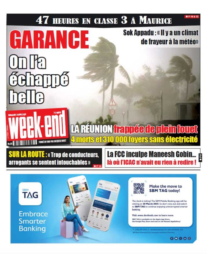 2 Mar 2025 06h00 Week-End du 2 mars 2025 LM Reader Abonnement Le journal en continue Cassis — Giflé par son épouse alors qu’il dormait à poings fermés 27 Oct 2025 17h00 week-end de festival culinaire et culturel chinois 27 Oct 2025 16h00 Trou aux Cerf : Un couple russe attaqué par deux malfrats 27 Oct 2025 16h00 Liberté conditionnelle refusé à Nasser Bheeky :« Je ne comprends pas ce que la FCC me reproche » 27 Oct 2025 15h12 Trafic de cannabis : Un maçon condamné à 14 ans de prison 27 Oct 2025 15h00 Tristes statistiques au 26 octobre : 101 victimes d’accidents de la route 27 Oct 2025 14h00 Reconstitution du meurtre de Daana Malabar — Une vive tension à la gare Jan Palach 27 Oct 2025 13h00 Rallye de Saint-Joseph à La Réunion : un frère de 12 ans et sa soeur de 9 ans sont décédés 27 Oct 2025 12h29 Loading... ACTUALITÉS Liberté conditionnelle refusé à Nasser Bheeky :« Je ne comprends pas ce que la FCC me reproche » Nasser Bheeky a comparu cet après-midi devant le tribunal de Port-Louis, où sa demande de remise en liberté sous caution à été rejeté. Il... 27 Oct 2025 15h12 Rallye de Saint-Joseph à La Réunion : un frère de 12 ans et sa soeur de 9 ans sont décédés 27 Oct 2025 12h29 Tristes statistiques au 26 octobre : 101 victimes d’accidents de la route 27 Oct 2025 14h00 Reconstitution du meurtre de Daana Malabar — Une vive tension à la gare Jan Palach 27 Oct 2025 13h00 Liberté conditionnelle refusé à Nasser Bheeky :« Je ne comprends pas ce que la FCC me reproche » Nasser Bheeky a comparu cet après-midi devant le tribunal de Port-Louis, où sa demande de remise en liberté sous caution à été rejeté. Il... 27 Oct 2025 15h12 si vous l'avez raté Le président Herminie institué hier : Ramgoolam, l’invité d’honneur de la cérémonie de prestation de serment 27 Oct 2025 11h00 De Plaine-des-Papayes à Goodlands : fin de cavale pour un voleur de deux-roues 27 Oct 2025 10h09 vidéos Motion rejetée en Cour : Pas de déplacement à l’étranger pour Renganaden Padayachy 23 Oct 2025 14h27 Divali, la chaleur d’une fête qui rassemble chez la famille Seetloo 20 Oct 2025 20h18 La famille Lunganyu a fuit la guerre au Congo : « Nous lançons un appel à l’aide aux Mauriciens et aux autorités » 17 Oct 2025 18h38 Bambous : une habitante dénonce le vol de Rs 30 000 sur son compte bancaire 17 Oct 2025 15h31 L’envers de la médaille : l’élite mauricienne se bat sans soutien médical ni psychologique officiel 10 Oct 2025 13h25