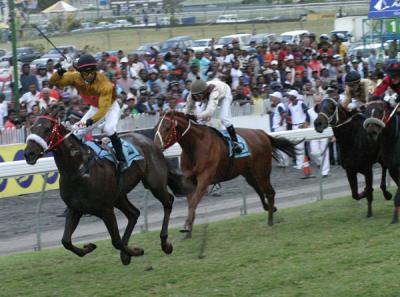Avec City Of Choice qui faisait figure d’épouvantail dans la septième épreuve, l’écurie Merven semblait capable de réaliser le triplé, mais contre toute attente ce fils de What A Prospect s’élança des stalles avec plusieurs longueurs de retard et ce, sans son cavalier. Les commissaires des courses devaient faire retentir la sirène pour ouvrir une enquête sur le départ qui conclut que City Of Choice avait obtenu toutes les chances. Au cours de l’enquête, il fut établi que le cheval s’affaissa juste au moment où le départ fut donné. Le malheur de City Of Choice allait faire le bonheur d’un autre, car le favori hors du coup, la course était plus ouverte. Umhlanga n’eut pas de mal à se porter aux avant-postes devant Golden Sheik. Powerful Gift, moins véloce, ne fut pas bousculé et progressa graduellement pour prendre le relais dans la descente. Made Of Steel se retrouva sur l’arrière-main d’Umhlanga et précéda Golden Sheik accompagné de Juan Belmonte devant Pacman, Firebolt, Desolation Row et Mdansi. Made Of Steel se rapprocha quelque peu à partir de la route, mais abusa de la largeur de la piste. Powerful Gift aborda la dernière ligne droite avec de solides prétentions. Mdansi termina le plus fort, mais il se contenta de la deuxième place devant Umhlanga. Il fut constaté après la course que Pacman avait saigné. City Of Choice devra, lui, se soumettre à un essai aux stalles à la satisfaction des commissaires des courses avant d’avoir le droit de recourir.