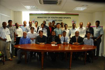 Il est à noter que 20 entraîneurs ont reçu leur diplome BECS (niveau 1). Il s’agit de José Achille, Pradeep Bundhoo, Rubin Batterie, Stéphan Buckland, Gérard Denis, Giovanni Sylvio, Dharmendra Gundowry, Sanjeev Jundoosing, Jugdish Callychurn, Giovanni Lindor, Mohammed Peerbaccus, Anom Petrapermal, Danny Ramasawmy, Alain Rougeot, Jean-Benjamin Seblin, Idriss Suffraz, Bernard Thomas, Gérard Tombé, Moobeen Jeewa et Menon Ramsamy. Les deux derniers nommés se sont distingués en ayant obtenu les meilleurs notes. Devanand Ritoo s’est adressé à eux en leur demandant de faire encore mieux. « Vous avez la responsabilité de bien préparer les athlètes afin qu’ils puissent atteindre leurs objectifs. Vous devez également attaquer le diplome de niveau 2 « , soutient le ministre.
